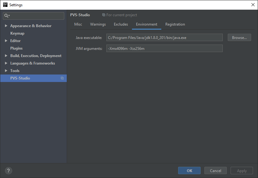 The PVS-Studio plugin can parallelize code analysis at the level of source files, that is, you can have analysis for any files you need to check (even within one project) running in parallel. The plugin by default sets the number of threads into which the analysis process is parallelized according to the number of processors in your system. You may change this number through the option PVS-Studio -> Options -> Common Analyzer Settings -> ThreadCount.